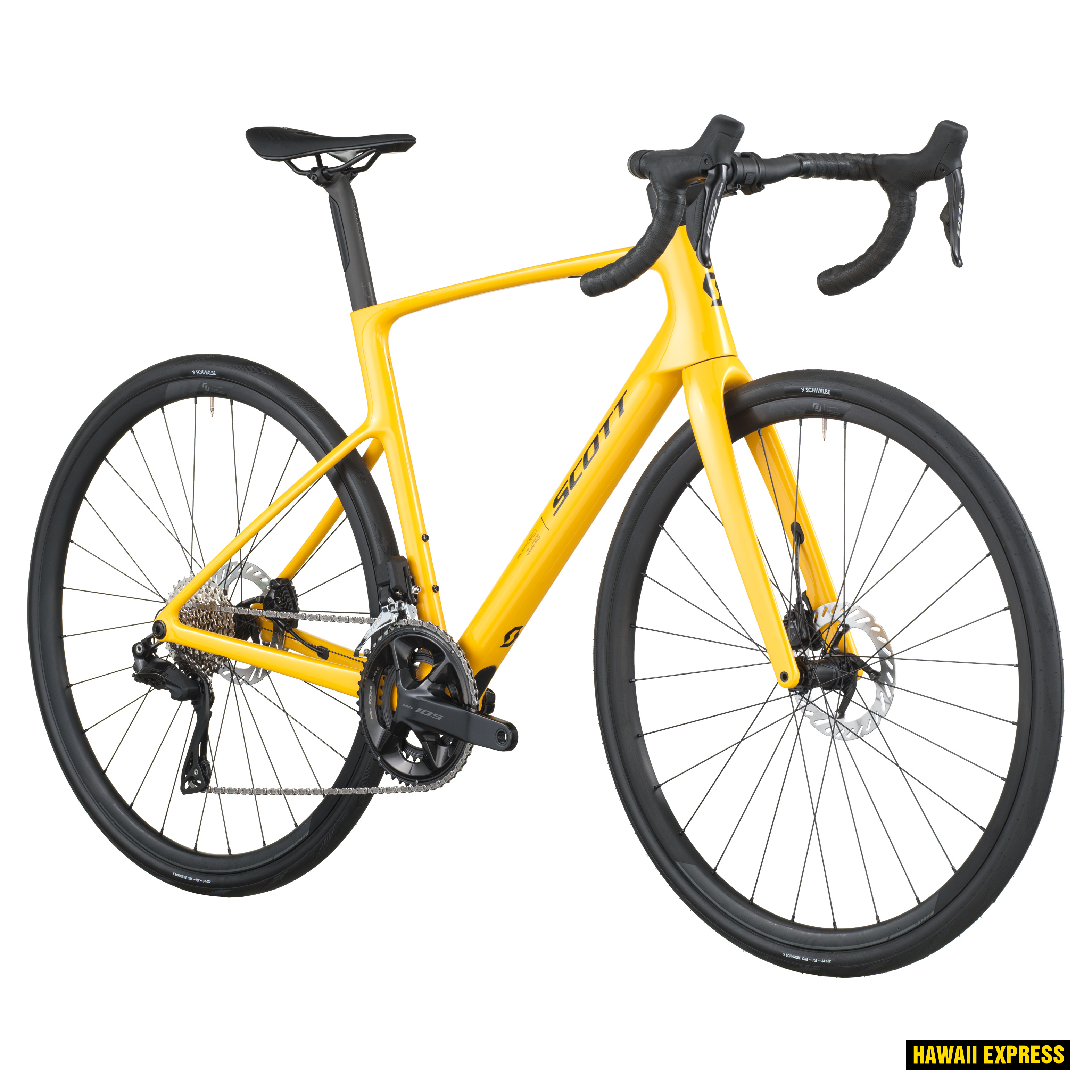 Blend performance and racing specs with a more comfortable fit, and you`ve got the SCOTT Addict 40. It`s a fast road bike that easily matches any ride, pace, or destination you`ve got in mind and one that won`t ask you to pretzel yourself into the racing position on the bike to get there. Starting with the lightweight and strong HMF carbon frame, the design focused on balancing road riding performance with all-road comfort. The frame is 25% more vertically compliant than racing bikes for a softer, more composed ride over rough conditions. The geo is also more open with a taller stack and shorter reach than a racing setup to give all-day comfort in the saddle. Tire clearance is also meant for you to go long, fitting up to 38mm tires for maximum cush if you take your Addict 40 on a mixed-surface adventure. All that said, it`s not a slouch should you want to up the pace. It`s responsive on the pedals, swift on the climbs, and planted on the descent, being just as eager to get your heart racing as it is slow-rolling to a coffee stop on a casual Sunday. We equipped Addict 40 with the versatility for whatever ride you go on. Shimano`s 105 Di2 electronic 2x drivetrain delivers workhorse performance and reliability on a budget, and durable Syncros RP2.0 wheels on Schwalbe ONE tires give a quick and confident roll anywhere you take your ride. Please note that bike specifications are subject to change without prior notice.