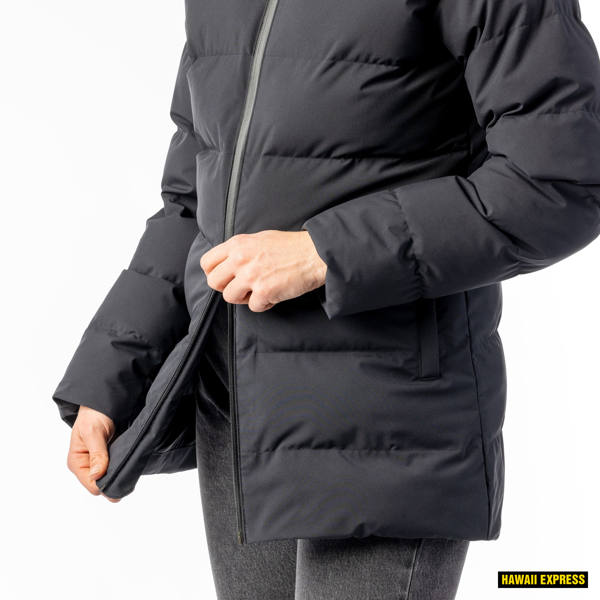 Pikk, kerge ja soe parka naistele igapäevaseks kandmiseks.